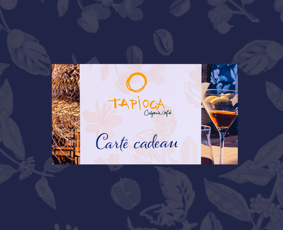 Avec ce bon cadeau de 60€, profitez de tout l'univers Tapioca : notre menu, les produits d'épicerie, ou encore nos ateliers. Valable 1 an, il s'adapte à toutes vos envies.